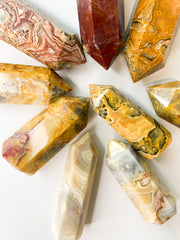 Crazy lace agate is commonly referred to as the "laughter stone," or "happy lace." It's a balancing and protecting stone, believed to ward off the "evil eye," bringing joy and absorbing emotional pain.