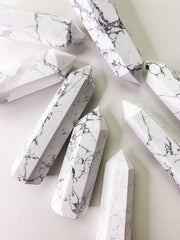 Howlite is a beautiful white stone that represents the spiritual qualities of stillness, tenderness, and open-mindedness.